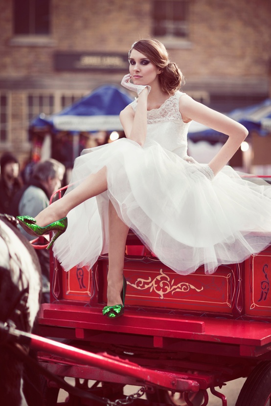 In the '60s miniskirts that razed on the runways and some daring brides used them at their wedding. He combined with wide shoes and large heels platforms along with hair collected were the most chic in the 60s